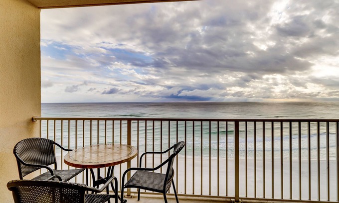 - Stunning Beachfront Views: Enjoy breathtaking views of the white sugar-sand beach and the mesmerizing emerald green waters of the Gulf of Mexico right from your furnished balcony.