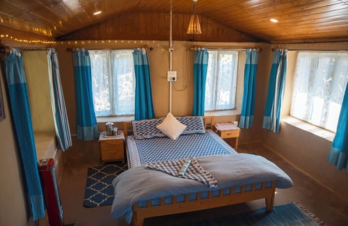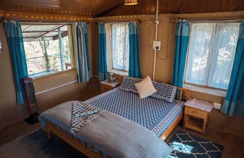 A charming mud and bamboo home awaits you at the serene foothills of the mighty Dhauladhar mountains, nestled in the lush green embrace of the Kangra Valley. Built using local materials, this compact and cozy retreat blends seamlessly with its natural surroundings, offering a tranquil, earth-connected stay.