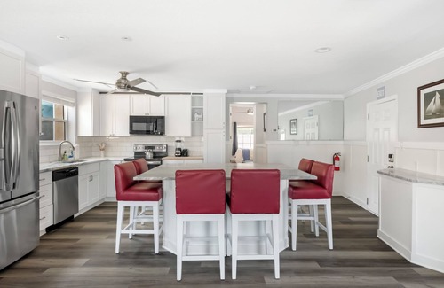 “This space is great for a large group—plenty of room and stocked with all the essentials and more. The location is beautiful and peaceful, just a short walk to the beach. We spent so much time enjoying the pool, sharing meals in the spacious kitchen, and fishing off the dock. Seeing manatees and dolphins every day was such a special bonus!" - Kelly