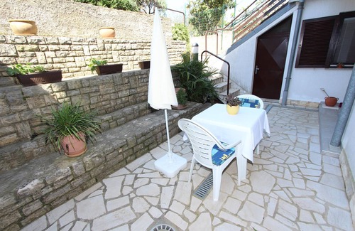 IRENA One-Bedroom Apartmentis a 3star Apartment.It is located in 30minutes walking distance from town centerand in 20minutes walking distance from the nearest beach. It is located on floor: 0. Interior size is 45m2. The accommodation has 2 terraces. The size of the terraces are 10and 12 m². The accommodation has one air conditioner. The air conditioner is located in the hallway. Bed linen and bath towels are provided by the accommodation itself. There is a possibility to usebarbecue on the terrace.