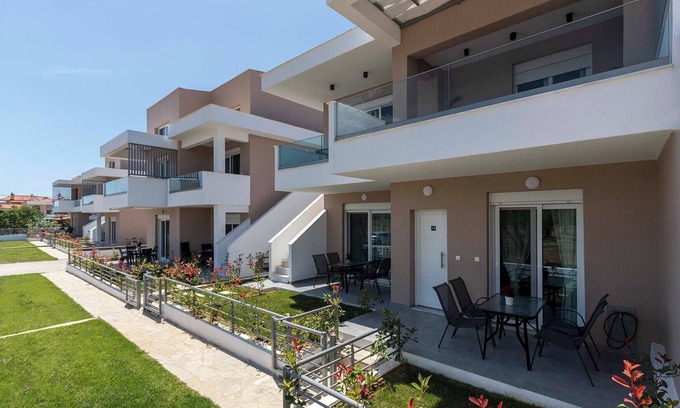 ?n a quiet and safe location, in the beautiful Ofrynio Beach-Costa Ofrynio, the Iro Residential Complex offers modern designed apartments and lofts with high aesthetics just 250 meters from the sea, but also a breath away from all shops and restaurants.