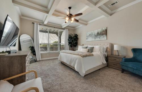 Iron & Ivy 5br5ba Sleeps 12 is located in Roanoke, just 26 miles from Globe Life Park in Arlington and 26 miles from Dickies Arena. The property is around 5.5 miles from Texas Motor Speedway, 23 miles from Fort Worth Convention Center, and 25 miles from Six Flags Over Texas. The vacation home also provides free Wifi and free private parking. The air-conditioned vacation home is composed of 5 separate bedrooms, 2 living rooms, a fully equipped kitchen with a dishwasher and oven, and 5 bathrooms. Towels and bed linen are featured in the vacation home. The accommodation has a fireplace. Zero Gravity Amusement Park is 26 miles from the vacation home, while AT&T Stadium is 26 miles away. Dallas-Fort Worth International Airport is 13 miles from the property.