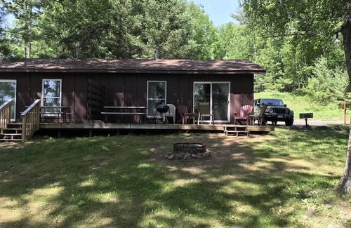 Enjoy the peace and quiet of northern Wisconsin in this cute, comfortable cabin overlooking beautiful Lake Delta near Iron River Wi. Nice deck with a picnic table, charcoal grill, lawn chairs, and a view of the lake. Enjoy the evening in front of the fire pit telling stories, enjoying a beverage, or roasting marshmallows with the kids. Perfect for families, atv riders, snowmobilers, fisherman and hunters. This is an old resort with 10 cabins, it can be busy during the peak summer season.