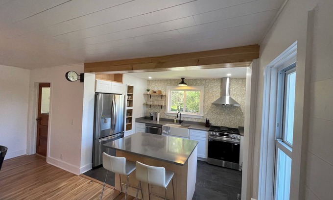 This completely remodeled stone cottage is right across the street from Lake Charlevoix. Washington Street Beach is less than a mile and a boat ramp is right there. The Landing restaurant is across the street. 3.5 miles from Castle Farms and just a 10 minute drive to Charlevoix and East Jordan. We have two stand-up paddle boards, and there are boat and bike rentals nearby. It's a great place for a vacation during any season.