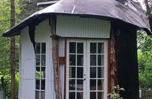 This listing is for those who like to get off the beaten path. You'll walk a 500 ft trail from your parking space to this unique mushroom dome that's been taken over by gnomes. Enjoy the sounds of nature on the trail past our garden and through the woods. Enter the playground of the gnomes. Find the green door to the tiny mushroom house in the big trees. Available summers May 1 to September 30. Other months it maybe available without running water by special request depending on the weather.