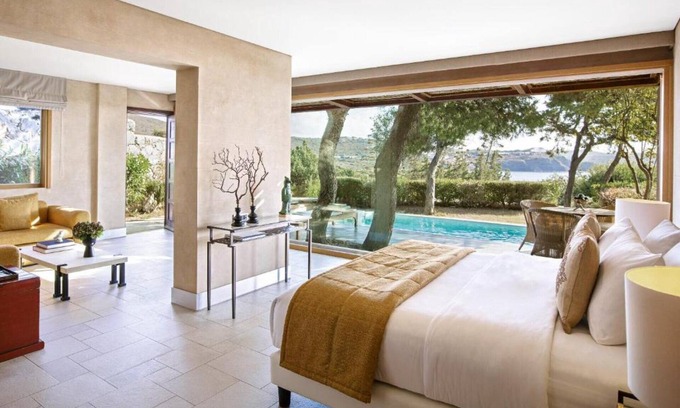 Best-rates for the Sounio villa starts from $2,317 per night with includes Pool, Security/Safety, Bedding/Linens, Child Friendly, TV, Private Pool, Wellness Facilities, Fireplace/Heating, Breakfast, Internet, Air Conditioner with all other amenities. Perfect for Weddings is committed to ensuring every guest experiences a comfortable and extraordinary stay, whether planning a romantic getaway, a honeymoon, a pet-friendly stay, or celebrating with the entire wedding party.
