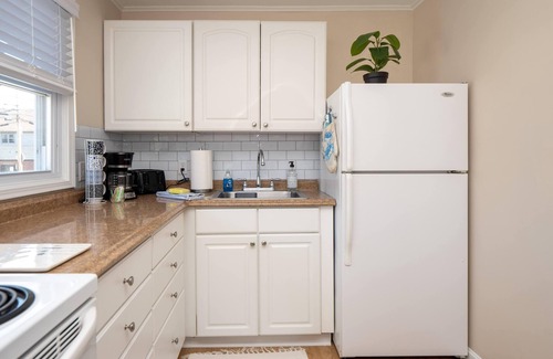 The Heart of Jamestown ranked as a super-host since 2019. We're owner occupied so only a text away 24/7. November 2024 a new king bed and chairs for a sitting area arrive!! We are walking distance to the beach, shops, restaurants, and ferry service to Newport. Beavertail State Park & Fort Wetherill are a bike ride away . There is a private entrance with keypad, A/C, and one off street parking space. State Reg #00074-STR. What makes us special is the fact we love hosting, because you are a special guest within our 3 family home. Guest reviews routinely mention the homemade baked goods (I owned a bakery in the past), cleanliness of the space, and the central location. There is a 3 night minimum for this apartment, however we also have a 3rd floor B&B space with only a 1 night minimum if you want a quick get away, and don't mind stairs. We can't wait to meet you!