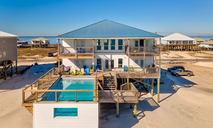 Island Fever - Gulf Beach, POOL, 6 Bedrm/5 Bath, Handicap ramp, Sleep 20 | House in Dauphin Island