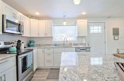 Master Bedroom: King bed | Bedroom 2: Queen Bed | Bedroom 3: Two Twin Beds | Living Room: Queen Sleeper Sofa. Included in this newly remodeled home is a fully equipped kitchen, propane fireplace, BBQ, A/C, flat screen TV's, washer dryer and free parking.
