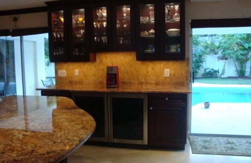 Beautiful Island paradise, single ranch style, Master Bedroom with full bath, 2 additional bedrooms with Hall bath, Gorgeous cooks kitchen with granite countertops, stainless steel appliances, Built in wine and beer coolers, cherry kitchen cabinets, covered patio overlooking inground pool in a private courtyard setting with a beautiful 6 ' high privacy wall, 2 car garage, laundry room, new circular brick paver driveway. 1 Block walk to beach or bike to Oceanside shops, restaurants, museum, marina, riverview park with walking trail and tennis courts. Many public golfcourses nearby.