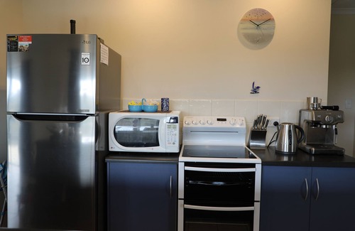 The fully equipped kitchen includes an island bench, a Westinghouse stove with ceramic cooktop and an espresso machine with ground coffee supplied. Also Scanpan cookware & cutlery and a rice cooker.