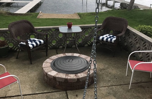 15 minutes east of Lake Geneva, right on the water with the best view on Browns Lake! 400 crystal clear, spring fed acres--you can boat, tube, swim, fish, sail or ice fish, ice skate, sled, and ski. (Just 15 minutes from Wilmont Mountain). Totally remodeled summer 2025, a 3,200+ sq foot addition. Beautiful hardwood floors, dry sauna and fireplace. Six bedrooms, 2 with king beds, 4 queen beds, twin bunk beds, plus semi-private kids' bunk room with 2 twins, the cottage sleeps 14. With 4 1/2 full baths and a family room on each level, it is perfect for 3 families! Take in the beautiful view on one of three decks. Also added a 19x12 screened in porch/4 season room with heaters. Bring your boat and dock it at our pier where you can catch champion bass and pike. Canoe available for family fun. Sit around the stone fire pit at night! Public golf course and tennis are minutes away. Fully equipped and remodeled expansive kitchen featuring a grand island. A/c, 2 washers & dryers, plasma TVs with roku cable and grill with gas provided, bed and bath linens provided. Located in friendly Burlington, Wisconsin--the Chocolate City--home to Nestle. You can smell the chocolate when you're on the water! Shop and dine in the quaint downtown.