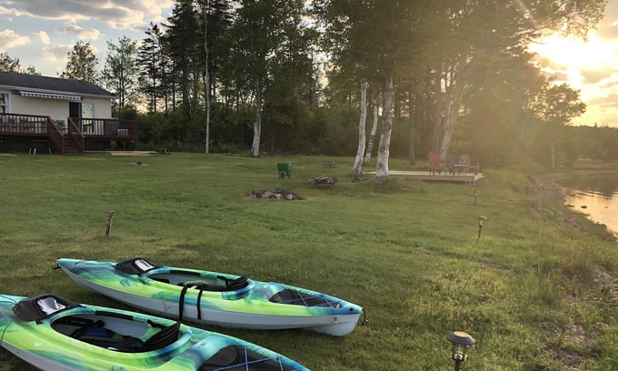 There are two kayaks with life jackets for those adventurous souls or bird watchers. Just 5 minutes away, on the Eskasoni Reserve you will find a full grocery store/liquor store and Goat Island trails for daily walks. There is a large wrap around deck with a fun spot to eat outside and an awning in case it's too hot in the sun or a sun-shower occurs. Enjoy a glass of wine on the upper deck or have your early morning coffee on the lower deck near the water. The lower deck is next to the waters edge and you will find this sitting area perfect to keep an eye on little swimmers or to just simply enjoy the sunshine and views.