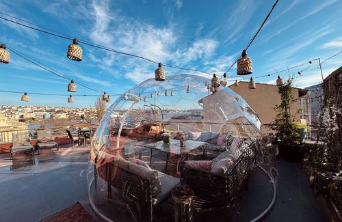 The expansive 100-square-meter terrace, located on the third floor and shared with the apartment above, boasts breathtaking views of Istanbul and the sea, offering a truly iconic panorama. It features three large dining tables for up to 20 people, a cozy winter Dome, perfect for enjoying the view and relaxing comfortably in all seasons and a barbecue, making it perfect for entertaining.