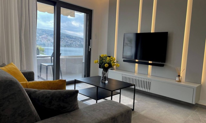 Completely renovated in 2025 by an Italian designer, this luxury apartment is situated right next to the port of Saranda, where ferries arrive from Greece. This beachfront apartment is truly a unique gem. Everything has been sourced from Italy to ensure the best experience in southern Albania. The Dimora San Michele apartment accommodates four guests in spacious bedrooms; one offers a seaside view and a queen-size bed, while the other features a king-size bed. The satin linens guarantee a restful sleep, enhanced by new thermal double-glazed windows and blackout curtains.