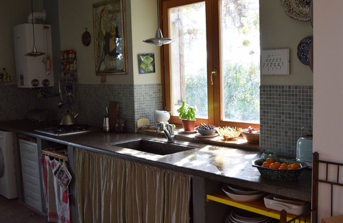 casaamentamaria is tough, but luxuriously renovated, house beautiful countryside between Rome and Florence. The house has several terraces, a private pool, a sloping garden and a picturesque village 2 km away. Inside there is a spacious hall with loft, a large kitchen with fridge and freezer, microwave, washing machine, a living room with a 2 p. sofa bed. Upstairs are the bedrooms (2 and 4 people) and there is a bathroom. Attached to the house is also a second outdoor bathroom, very practical when using the pool. The house is comfortable and tastefully decorated. Outside the rental season can be used by writers and artists as Artist in Residence.