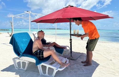 Ithaa Seaview is offering accommodations in Guraidhoo. The air-conditioned accommodations are a few steps from Guraidhoo Beach. The accommodation offers a public bath, free Wifi throughout the property, and family rooms. At the guest house, the units are equipped with a wardrobe, a flat-screen TV, a private bathroom, bed linen, and towels. The guest house provides certain units with sea views, and all units are equipped with a kettle. Buffet and à la carte breakfast options with local specialities, pancakes, and fruit are available. Guests may eat at the on-site family-friendly restaurant, which is open for dinner and lunch. For guests with children, the guest house features a children's playground. After a day of canoeing or walking tours, guests can relax in the garden or the shared lounge area.