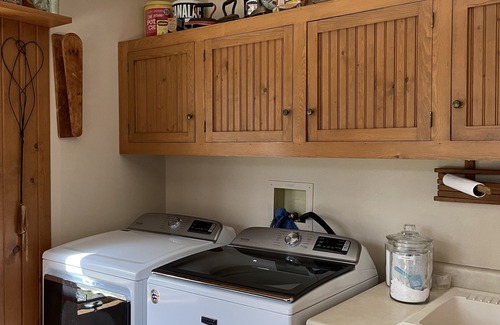 You will find plenty of comfortable couches in our living area, along with rainy day activities including: movies (DVD’s), books, puzzles, games for all ages! J&J’s Place also features a “Diva Den” video theatre with 64” screen. It is also a SMART device and you can log in to your own account. OR choose from literally hundreds of DVD's for a classic movie night. In the garage: extra storage, coolers for use at the lake, and a second side-by-side refrigerator/freezer provided for bait/beer/ice.