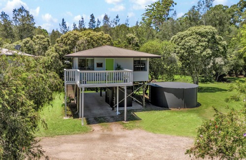 Perched above the landscape, Jabiru is accessed via steps, offering sweeping views of the lush natural surroundings. Beneath the house, you'll find ample parking for 1 - 2 cars.