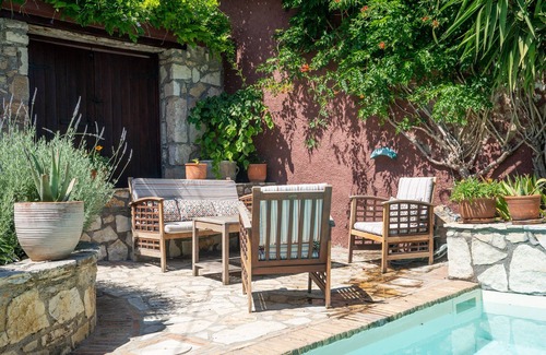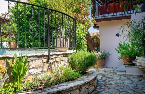 Restored stone house with private pool, colourful garden and in a quiet position just steps away from the heart of the village and 5 mins drive to the sea