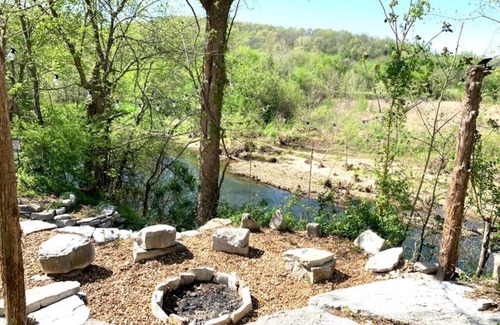 **Because it located is on a bluff, this cabin may not be suitable for small children. The firepit is atop the bluff and the steps leading to the creek are steep, which can be unsafe for those with mobility issues. The creek access landing at the bottom of the steps is small and does not provide a beachy area, though it's the perfect place to hop in for a swim or take off on a float.
