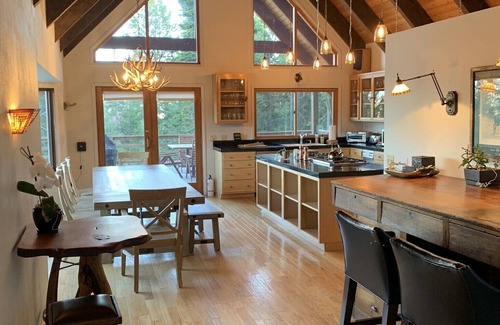 This is a perfect family vacation home, romantic getaway, or writer's retreat. Nestled in the trees above Wilson, WY, this 4 Bedroom/2.5 Bath, fully equipped home is very quiet and private. Located 5 minutes from Wilson and Teton Pass, and 20 minutes from Jackson Hole Mountain Resort, Grand Teton National Park, and downtown Jackson.