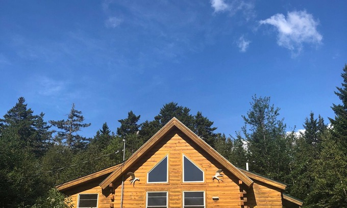 Escape the crowds head to this Mountian Hideaway where the air is pure, and has the scent of Balsam Christmas Trees. This modern and attractive log cabin sits high on Black Mountain (Ck out photo of location), Jackson NH. It’s surrounded by the privacy of the White Mountain National Forest. It has the feel of being in the wilderness, but minutes to civilization. On a clear night step outside and shut off the lights, you can almost touch the stars, and hear a pin drop. The privacy and spectacular views truly add to this great log cabin.The interior is handsomely furnished, 2 bedrooms, and loft sleeps 6. A granite countered kitchen which is fully equipped - garlic press to wine glasses. Wood stove fireplace is in main open concept common room area adjacent to dining, and living room areas. The lower walkout level contains a finished recreation room with flat screen/DVD, there is a large film selection.The cell signal is strong , and internet can be accessed on laptop through hot spot on cell. Outside on lawn there is grill, picnic table , lawn chairs and a majestic mountain view. At times you can hear “The Great Brook” which is steps away and offers a few soaking pools. This Magnificent Hideaway is on The White Mtn National Forest Trail System :Bald Land Trail, East Pasture Loop, and Black Mtn Cabin Trailhead are right out the door. A 5 minute ride to Jackson Village, offers some top notch restaurants and taverns all family friendly. There are 2 public golf courses in town, and the Wildcat Stream at Jackson Falls offers a scenic place to take cool dip. There are numerous areas dedicated to fly fishing and areas for bait fishing. Kayak/Canoe rentals on the Saco River is a 1/2 hour ride. People have chosen Jackson for their vacation destination since the 1800’s,and for many good reasons. The town of North Conway is a 20 min ride- tax free shopping and plenty of taverns & restaurants. Storylandis 15 minutes away. Cabin is 60 miles from the Maine Coast and 125 miles from Boston. State of NH Meals & Rentals License #101491
