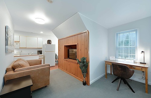 Experience the beauty of the Virginia mountains at the Jackson River Estate, featuring 3 spacious dwellings on 900 ft of river frontage. This listing is for the 1-Bedroom Studio, a 600 sq ft space that sleeps 2 guests. The studio boasts a kitchen, seating area, Smart TV, high-speed Wi-Fi, work desk, and full bathroom, as well as a balcony deck with bistro table and chairs overlooking the Jackson River. When the main house is occupied, you will have one parking spot on the shared driveway.