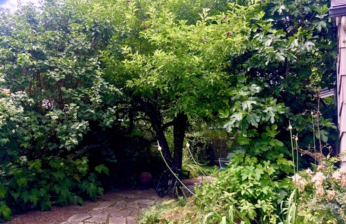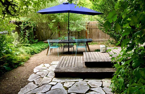 The grounds around the home are beautifully landscaped to create garden nooks throughout the property, offering a place of serenity and beauty. There is a six-person dining table in the backyard, off the master Suite, available to house guests. There is a rental Studio situated at the back of the property, and each place has separate outdoor areas in the garden. House and Studio guests are both welcome to use the large BBQ on the property.