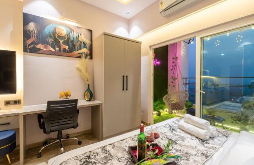 22 miles from Swaminarayan Akshardham in Greater Noida, Jacuzzi & Big Screen By Buddies Home provides accommodations with access to beauty services. With city views, this accommodation offers a balcony. The accommodation features a hot tub, free Wifi throughout the property, and an elevator. This air-conditioned 1-bedroom apartment comes with a seating area, a flat-screen TV, and a fully equipped kitchen with a microwave. The unit at the property features a hot tub and a dressing room. The apartment offers bed linen, towels, and daily room service. There is a coffee shop, and a mini-market is also available. Tughlaqabad Fort is 23 miles from the apartment, while Humayun's Tomb is 24 miles from the property. Hindon Airport is 20 miles away.
