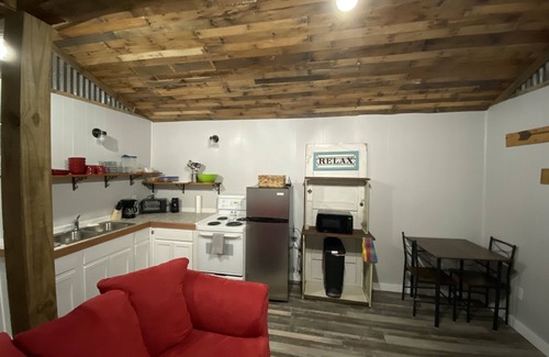 Peaceful and charming little cabin. Only minutes from Winnsboro. Huge yard that’s great for the kids. This open floor plan cabin is great for couples or little families. It sleeps four comfortably with one queen size bed and hide a bed sofa. James’ cabin has everything that you need including kitchenette, WIFI a Roku TV. This place also has covered parking.