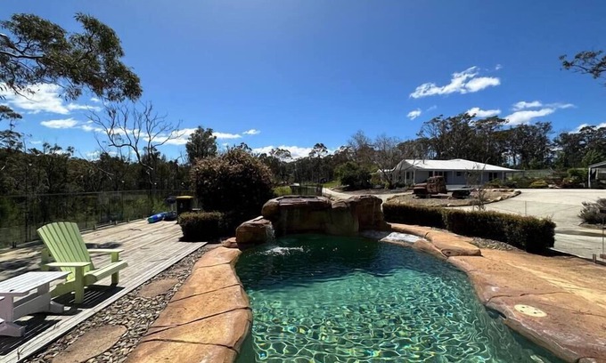Want an amazing getaway? Disconnect and unwind! Explore native bushlands and all its treasures from an ancient Aboriginal boundary tree to an oasis of native plants and wildlife, relax by the pool complete with waterfalls and heated spa, enjoy a wine on the deck or a beer by the fire pit while watching the sunset, settle in for a movie in the high end cinema room, play arcade games or feed and pat our mini goats and sheep after collecting the fresh eggs for breakfast from our onsite chickens!