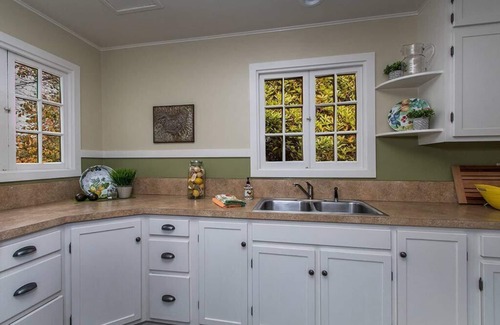Jane's Creek Cottage is the perfect place to stay if looking for a quiet retreat while exploring the Redwoods or visiting Cal Poly Humboldt. Families will love staying here while visiting their Cal Poly student and will feel right at home. Start the day with coffee on the covered porch then walk or drive to the Redwoods, campus or downtown, all are just a short distance away. After a day of adventure guests will love returning to this charming retreat that feels like a restored farmhouse filled with both modern and vintage decor. The wide plank faux wood floors add to the country ambiance. Visit the Arcata Farmer's Market or wonderful gourmet, organic grocery stores, Wildberries or the Co-Op and return to cook a delicious meal in the fully stocked kitchen with a gas-stove. Don't feel like cooking then throw some local grass fed beef or fresh fish on the propane BBQ and dine al-fresco on the patio. Sorry, no dishwasher but plenty of dish and glassware provided.