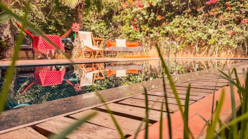 Offering a garden, Janna d'Ifni provides accommodations in Sidi Ifni. With mountain views, this accommodation features a patio and a swimming pool. The accommodation offers a solarium, free Wifi throughout the property, and family rooms. At the guest house, all units have a wardrobe. Each unit comes with a private bathroom, a walk-in shower, and a hair dryer, and certain units at the guest house have a safety deposit box. At the guest house, each unit has bed linen and towels. A selection of options including local specialities, fruit, and juice are served for the continental breakfast. There is a coffee shop and lounge. You can play darts at the guest house. A water park and outdoor play equipment are available at Janna d'Ifni, while guests can also relax on the sun terrace. Guelmim Airport is 34 miles away.