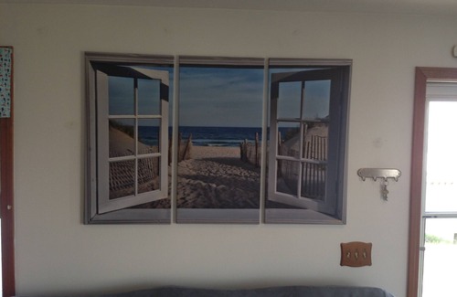 This 2 bedroom, 1 bath modern cottage is located at Breakwater Village. House was just renovated in June of 2024. Your private beach is less than a 5 min walk from the rental. This house is fully equipped and supplied with your every day needs including wireless high speed Internet and a Roku ( streaming ) TV in all the rooms. A/C is provide from a Mitsubishi mini split system also. An outdoor heated enclosed shower is a great addition for a rinse after the beach. Indoor bath also. This house even includes its own private beach, which is only a 3-5 minute walk away! It has two bedrooms with a double bed in 1 room and 2 single bunks in the other. The living room has a queen sofa sleeper.