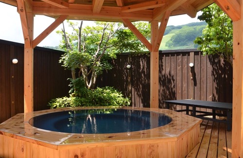 The openair bath draws water from Hakuba Himekawa Onsen The spring quality is a sodium chloride spring and it is effective for fatigue recovery and chronic skin diseases and the water is smooth
