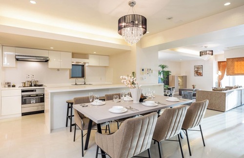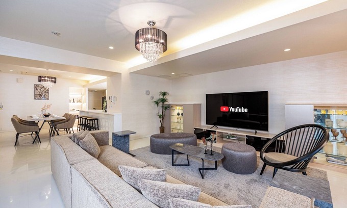 - Luxurious Amenities: Enjoy a sophisticated hotel-like environment featuring five beautifully designed bedrooms, a private gym, and a generous living and dining area, all contributing to a lavish stay.