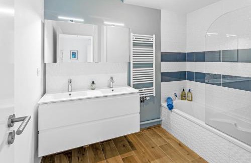 Jardin du 8e Ciel - Neuf & Central is located in Nantes, just 1.4 miles from Le Lieu Unique and 1.1 miles from Nantes Natural History Museum. This property offers access to a balcony, free private parking, and free Wifi. Botanical Garden of Nantes is 1.7 miles from the apartment and Nantes Planetarium is 2.1 miles away. Providing a terrace and city views, the spacious apartment includes 2 bedrooms, a living room, flat-screen TV, an equipped kitchen, and 1 bathroom with a bath. Towels and bed linen are provided in the apartment. The property has an outdoor dining area. Popular points of interest near the apartment include Bouffay Area, Castle of the Dukes of Brittany, and Printing Museum. Nantes Atlantique Airport is 5 miles away.