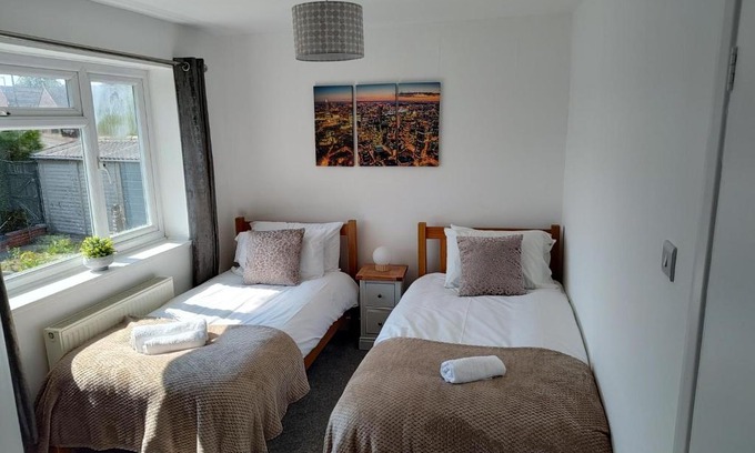 Jarvis Drive 3 Bed contractor house In melton Mowbray offers accommodations in Melton Mowbray, 17 miles from Belgrave Road and 17 miles from Trent Bridge Cricket Ground. The property is around 18 miles from Leicester Train Station, 18 miles from National Ice Centre, and 19 miles from University of Leicester. Donington Park is 25 miles from the vacation home and Kelmarsh Hall is 28 miles away. With free Wifi, this 3-bedroom vacation home offers a flat-screen TV, a washing machine, and a fully equipped kitchen with an oven and microwave. Towels and bed linen are offered in the vacation home. The property has an outdoor dining area. Guests can relax in the garden at the property. De Montfort University is 19 miles from the vacation home, while Nottingham Castle is 20 miles from the property. East Midlands Airport is 22 miles away.