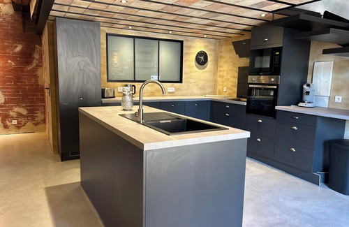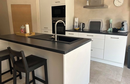 Fully equipped kitchen (induction hob, oven, microwave, Senseo coffee maker, dishwasher, fridge-freezer, hood, utensils and tableware)