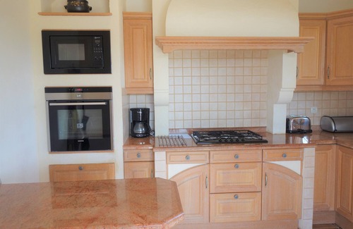 Kitchen: provencal in style and well-equipped for cooking, with oven & hob (gas), microwave, dishwasher, fridge, freezer, kettle, toaster & filter coffee machine; doors lead out to a lovely dining terrace with gas barbeque, for those late dinners into the evening.