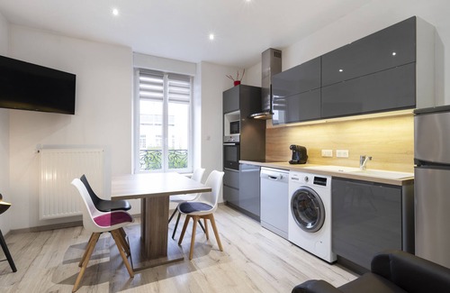 The flat is located next to the Vittel Town Hall, in the town centre. It is on the ground floor of the Residence. The flat is furnished with a fully equipped kitchen and has a separate bedroom, a separate shower room and a separate toilet. With a flat screen TV, washer-dryer, dishwasher, hotel style bedding, this flat is perfect for couples wishing to spend a weekend in Vittel. Relaxation guaranteed