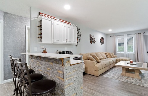 The lower level presents a cinematic marvel with its impressive 150" theater, alongside a bedroom featuring two queen beds. For more insights into the exceptional experiences our property offers, peruse our reviews on Airbnb. Your next retreat deserves the unparalleled comfort and entertainment that our space is ready to provide – we look forward to hosting you!