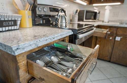 This 3 bedroom, 2 bath home has everything you need for a wonderful stay and is located minutes away from so many great spots in Jenks. Just a quick 3 min drive to Five Oaks Lodge, Spain Ranch, and the Jenks Aquarium. If you're in town for a baseball tournament, this house is a 4-minute drive to the Jenks baseball fields. If you need to get to Tulsa, this house is less than 2 miles from the US-75 on-ramp. It's also nearby Jenks Riverwalk Crossing and Main Street which offers great shopping and dining!