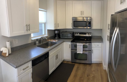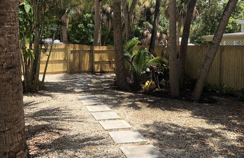 This 2 bedroom, one bath bungalow is located on a quiet street near the Indian River Lagoon. Fully furnished and recently remodeled. Has a private patio with fenced yard, washer, dryer, well equipped kitchen, bikes and beach gear! Walk to downtown Jensen Beach to enjoy the restaurants and bars. Less than five minutes to the U.S. Sailing Center, Indian Riverside Park, and the beach. Room for two cars or one car and a boat on trailer 20 feet or less. The boat ramp is less than one mile away.