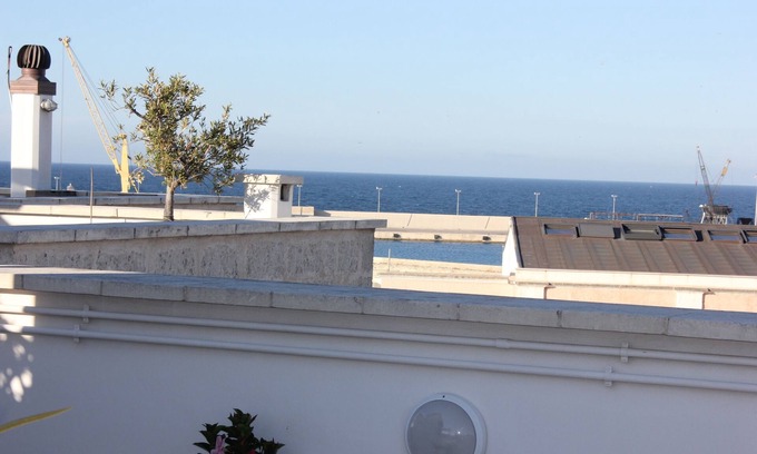 Near the port, overlooking Piazza Garibaldi, the most lively in Monopoli, with many bars, restaurants, ice cream parlors, in a historic building from the 1600s, 3 independent apartments on one floor with private terraces, consisting of a large living room-kitchen bedroom bed, bathroom with shower, and each with private terrace equipped with table, 4 chairs, white aluminum beds with mattresses, for relaxing in the sun and barbecue, the apartments are equipped with dishes, both bath and bed linen, and included cleaning and weekly rearrangement of the apartments. free WIFI.