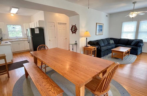 Jett’s House features a traditional open floor plan, perfect for your Ocracoke vacation. Set back on a spacious property. Enjoy relaxing on the covered porch, spacious screened porch or covered ground level deck. Jett's House offers a convenient walk or bike ride to shops and restaurants.