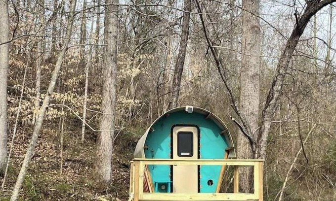 Queen bed with luxurious bedding, bench seating, shelving and storage. Deck overlooking the Cumberland River. The drive to the setup is a one lane gravel drive to the riverbank, can be bumpy.