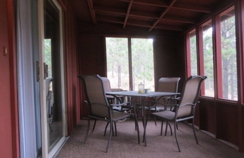 The JH Pine is the perfect home base for your Black Hills adventures. Centrally located in the Black Hills on Edelweiss Mountain near beautiful Pactola Reservoir just off of Hwy 385, you're within 30 minutes of most of the major attractions. This cozy cabin is perfect for two couples or a small family. There are two bedrooms with queen beds, three smart TVs, and a full bathroom. We also have an air mattress for an extra bed. There is a large screened-in porch, so you can still enjoy the outdoors even if the weather isn't cooperating. The screened porch is furnished with a cozy sectional, dining table, and seating. It's also the perfect place to sip your coffee as you watch the abundant wildlife. We have deer and turkeys, in your backyard. There's a propane grill on the deck if you want to do some barbecuing. We also have room for a small (8 ft) trailer.