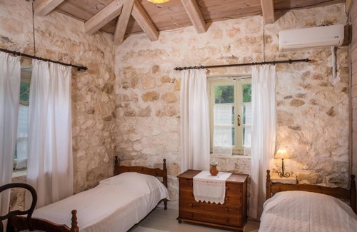 Villa Yianni s is a 230s.q meters two storey traditional stone villa in Vasilikos. The ground floor features a very spacious living room with traditional fireplace and furniture harmoniously embellishing the house. As you walk through the living room you reach a large fully equipped kitchen facing the lush landscape surrounding the house with its own private entrance. The ground floor also consists of one bedroom with a double bed, one bathroom with a shower unit and a w.c.